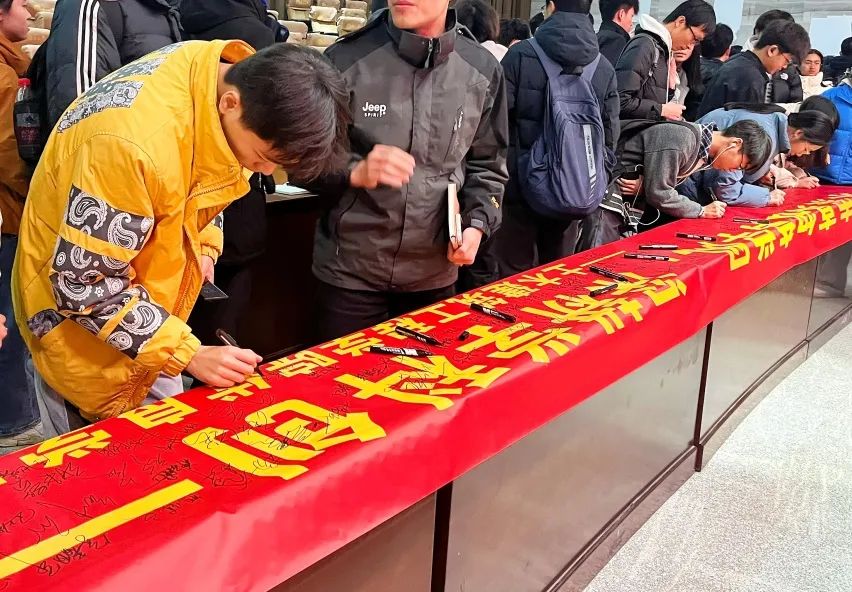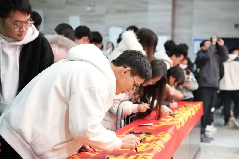 最后,各班级学生代表在“优良学风建设”横幅及承诺书上签字。