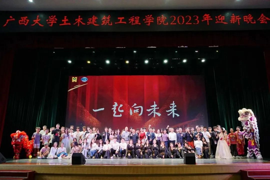 伴随着“恰同学少年,风华正茂”的期待,以及“百舸争流、天道酬勤”的祝愿声,广西大学土木建筑工程学院2023年迎新晚会圆满结束。廉洁自律扬正气,土木迎新展宏图。我院师生将不忘初心,砥砺前行,奋力推进土木工程世界一流学科建设,为实现中华民族伟大复兴的中国梦贡献智慧和力量。