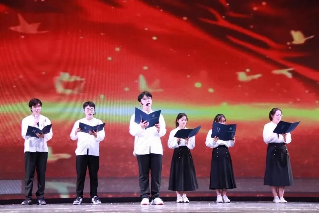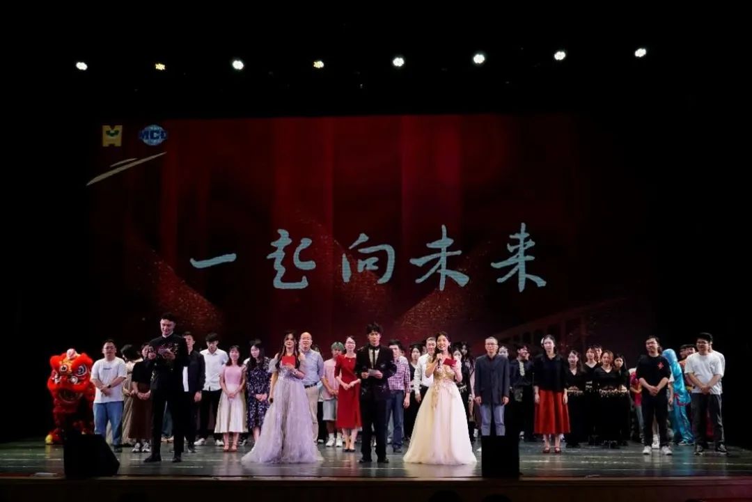 前程缤纷,共赴未来。最后压轴的结尾曲目《一起向未来》由我院学工组老师共同合唱,把现场的氛围推向高潮,学院党委副书记银宁,团委书记李道洋,团委副书记潘桂祯、王纪坤,学工组杜桂荣、蒋发正、吴小晖、刘承诚、谢雨真、何冉、赖珩、陆源、张科富老师齐声合唱,共同祝愿学院的明天更加美好。