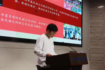 紧接着,广西大学君武青年讲师团王沛兵作了题为《携手筑梦壮美广西,共绘民族团结中国式现代化新篇章》的宣讲,他的宣讲围绕“广西地域文化与民族特色”“中国式现代化进程中广西角色定位”“民族团结进步事业在广西实践案例”“壮美广西新篇章规划与展望”“携手筑梦,共绘未来——各方力量汇聚壮美广西”五个层面展开,鼓励广大团员青年练就过硬本领,通过各类民族文化系列展示体验活动,加强铸牢中华民族共同体意识教育,巩固和发展各族人民团结奋斗的局面,为实现中华民族伟大复兴的中国梦凝聚强大青年力量。