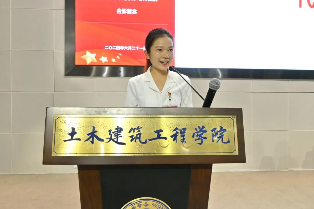 广西大学研究生会主席团代表周奕彤在致辞中表示土木建筑工程学院研究生会在深入推进思想政治教育、培育和弘扬优良院风学风、积极组织社会实践活动、构建和谐文明的校园环境、坚定维护研究生的合法权益以及不断加强自身组织建设等方面开展了一系列富有成效的工作,并取得了显著的成就。希望新一届研究生会能充分发挥桥梁纽带作用,强化思想引领,提高服务水平,谱写无愧于前辈、无愧于时代、无愧于人民的壮丽篇章。