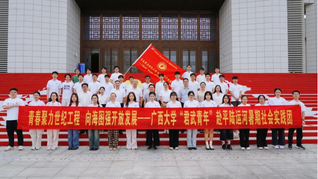 当代中国青年生逢其时,施展才干的舞台无比广阔,实现梦想的前景无比光明。青春聚力世纪工程向海图强开放发展——广西大学“君武青年”赴暑期社会实践调研团已踏上征程,“君武青年”们将以实际行动,深入探索平陆运河工程的建设与发展,为壮美广西的宏伟蓝图添上浓墨重彩的一笔。期待着他们在此次暑期社会实践中,绽放青春光彩,用智慧和汗水书写属于新时代的青春篇章,为建设壮美广西、推动祖国发展贡献出自己的力量,让青春在全面建设社会主义现代化国家的火热实践中绽放绚丽之花。