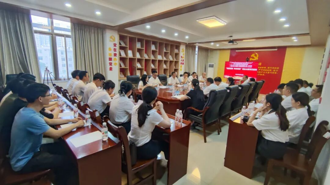 2025年8月30日下午,广西大学土木建筑工程学院研究生(博士生)第七党支部、教职工第一党支部与广西路建工程集团有限公司(总部)第四党支部、南宁市轨道交通6号线1标党支部开展联建共建主题党日活动。通过“党建+科技+产业”创新模式,搭建起高校智库与企业需求精准对接的桥梁。各支部的党组织负责人、党员代表及技术骨干约40人参加活动。