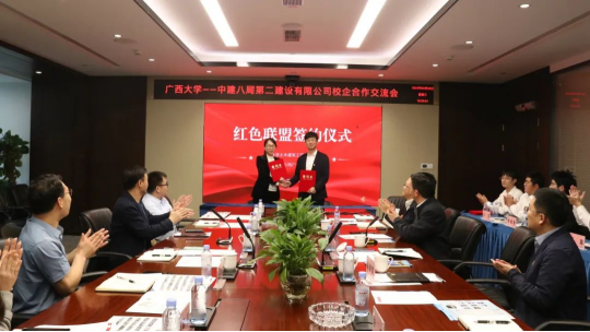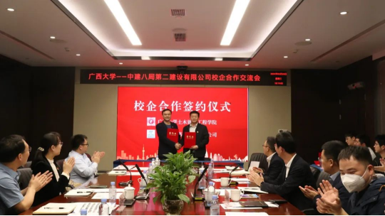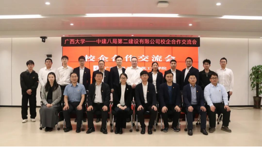 中建八局第二建设公司广西分公司相关部门负责人及公司校友代表,广西大学土木建筑工程学院应届毕业生代表参加会议。