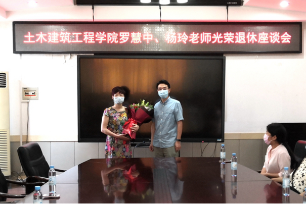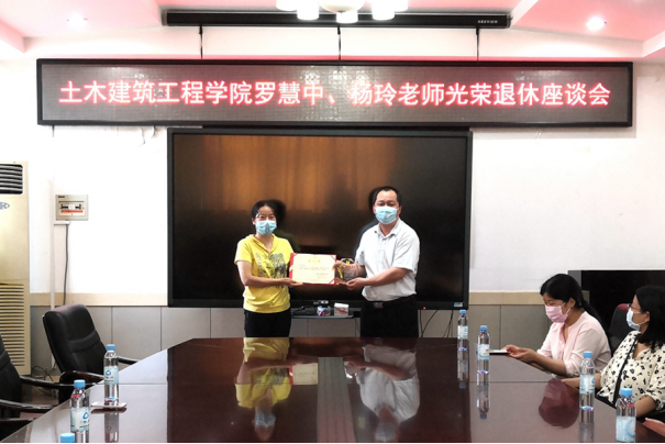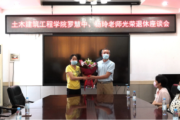 会前,戴永恒书记向罗慧中、杨玲老师颁发光荣退休证书和纪念品,彭林欣副院长、宁裕忠主任分别向罗慧中、杨玲老师献上祝福鲜花。会后,同事们与两位退休老师一起合影留念。