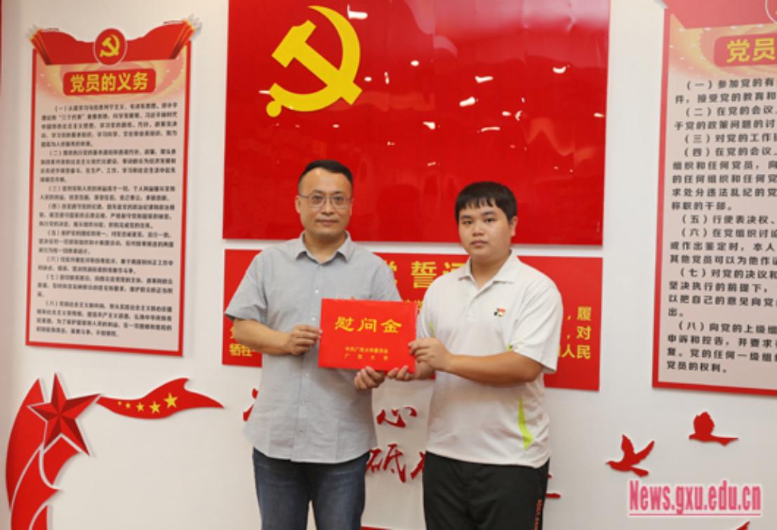 7月2日下午15时,校党委副书记、副校长吴尽昭到我院走访慰问困难学生党员代表——研究生第十党支部党员丁健同学。