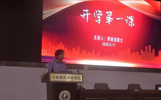 2020年9月11日上午8时45分,土木建筑工程学院“开学第一课”讲座于土木学院大型结构平台综合楼报告厅顺利举行。讲座邀请了路桥工程专家,中国工程院院士、教授级高级工程师、广西大学土木建筑工程学院教授、博士研究生导师郑皆连主讲,由吴桂宁副院长主持,2020级的土木工程专业全体新生参加了此次讲座。