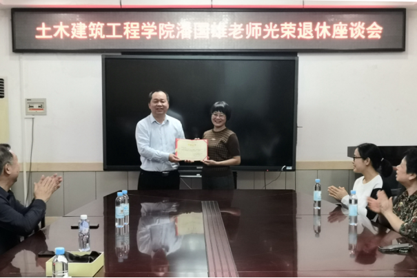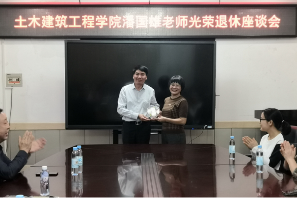 会上,潘国雄老师回忆自己工作37年来,特别是调入广西大学土木建筑工程学院工作后的心路历程与收获,对学校、学院给予工作上的关心和生活上的帮助表示感谢。工作中的辛勤投入,同事间的友谊之情,一路走来的点点滴滴都将是她今后最难忘的美好回忆。