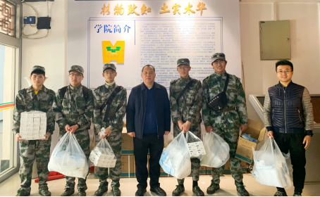 2021年1月12日,土木建筑工程学院党委书记戴永恒与学院老师为学生发放“防疫暖心包”,为返乡与留校学生的寒假安全悉心护航。每位学生均收到一次性医用口罩10只、一次性手套10双、酒精消毒湿巾10片、文件袋1个、防疫温馨提示:《致全体同学的一封信》1份,本次累计为3000多名学生发放“防疫暖心包”。