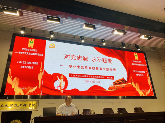 正值建党百年,土木建筑工程学院202名党员即将奔向各自的前程和未来。本次毕业生党员离校教育将党史学习教育、专题党课、老师寄语、经验分享等多种教育方式有效融合,强化毕业生党员责任意识。全体毕业生党员通过观看专题教育片,重温中国共产党在抗击新冠肺炎疫情、脱贫攻坚等伟大实践中带领全国人民共同取得的重大成果。