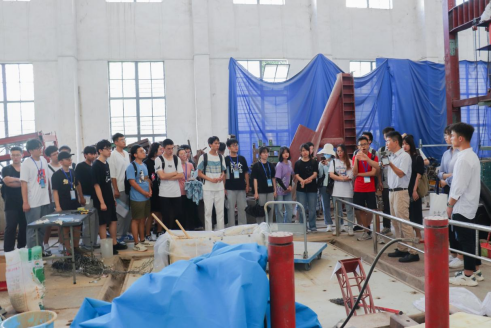 在“土木村”,广西大学土木建筑工程学院实验中心主任胡旭老师带领营员们参观了新结构试验平台、旧结构试验大厅以及水工大棚等实验场地,细致地介绍了学院所拥有的实验设备与实验环境。