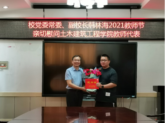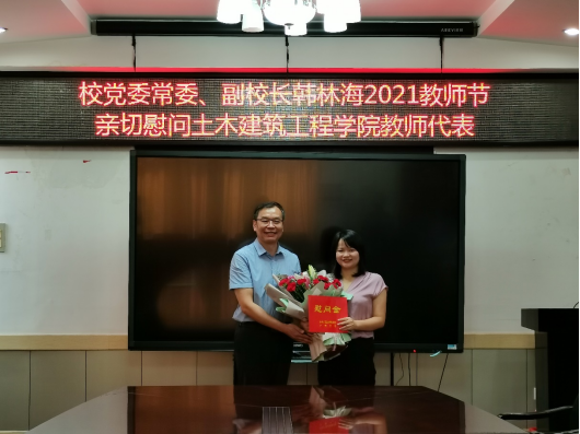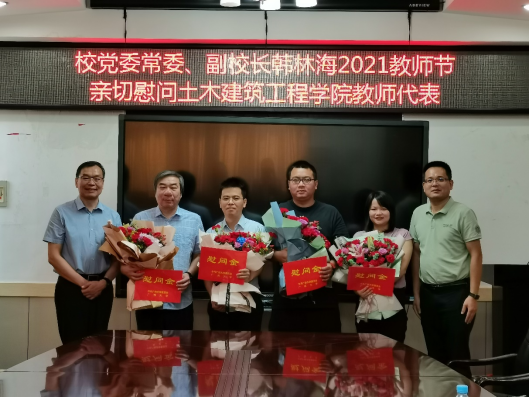 9月10日第37个教师节当天,校党委常委、副校长韩林海来到我院,亲切慰问了一线教师代表吴桂宁教授、杨海峰副教授、罗丹旎老师、蒋明杰老师,并通过他们向全院教职工致以节日的问候和祝福。校科技处副处长刘培军,学院党委书记戴永恒,党委副书记、常务副院长陈正,党委副书记秦建丽,副院长陈立华、宁裕忠陪同慰问。