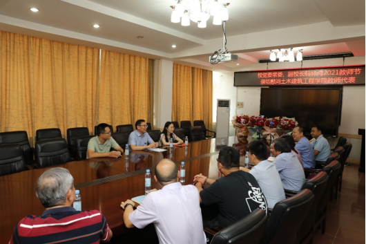 韩林海副校长亲切询问了教师代表们的工作、生活情况,详细了解了教师代表们工作、生活中遇到的困难和问题,对他们的辛勤耕耘、默默奉献和为学校发展做出的贡献表示谢意,鼓励他们不忘初心、牢记使命,继续发扬爱岗敬业、立德树人精神,为党育人、为国育才,一如既往地关心、支持学校工作,一如既往地为学院发展和土木工程一流学科建设做出贡献。韩林海副校长还指出,土木工程作为广西唯一的世界一流学科建设专业,是广西大学的财富,也是广西的财富,使命光荣、任务艰巨,且充满挑战,因此,建设上不仅要对标世界一流,更重要的是要有自身发展特色、要具备可持续发展的内涵;学院要坚持党建引领,强化党委的政治核心和政治引领作用,增强学院的凝聚力和向心力;学院领导班子要凝心聚力、奋发有为,团结带领全院教师大力推进改革创新,努力建设高水平科研平台,积极申报重大科技项目,着力提升人才培养质量,切实增强社会服务能力,着力解决学院发展和学科建设中的各种难题,力争土木工程世界一流学科建设更上一个台阶。