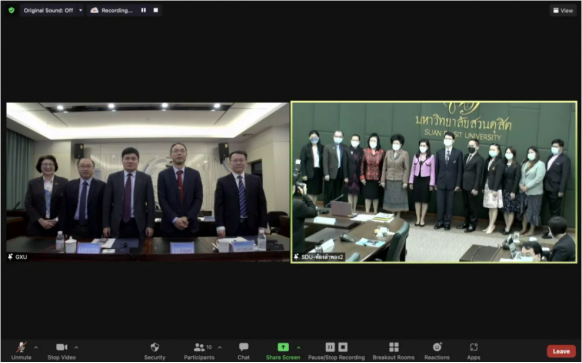 11月30日,泰国川登喜大学素攀孔子学院通过线上线下相结合的方式隆重举办了“中泰高等教育交流互进共同发展的策略研究论坛”,中国驻泰大使馆教育参赞冯俊英女士以视频方式出席论坛并致辞,中国广西教育厅对外合作与交流处罗耀光处长莅临广西大学会场出席论坛并致辞。广西大学党委常委、副校长、素攀孔院中方理事长范祚军教授代表广西大学致欢迎辞,川登喜大学副校长、素攀孔院泰方理事潘查妮·高娜博士(Dr. Pornchanit Kaew-nate)受邀担任论坛主席并致开幕辞。中泰双方近百位嘉宾和专家出席本次论坛,我院党委副书记、常务副院长陈正教授应邀出席并作报告。