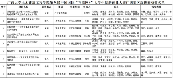 在7月举行的广西选拔赛中,我院9个参赛项目,获金奖项目4个,银奖项目4个,铜奖项目1个,并有4个项目被推荐参加全国总决赛。