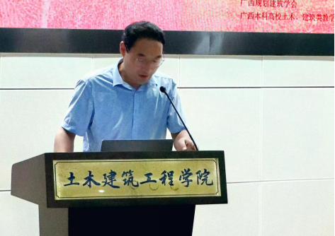 图3 广西大学教务处副处长、广西本科高校土木、建筑类教学指导委员会秘书长彭林欣致辞