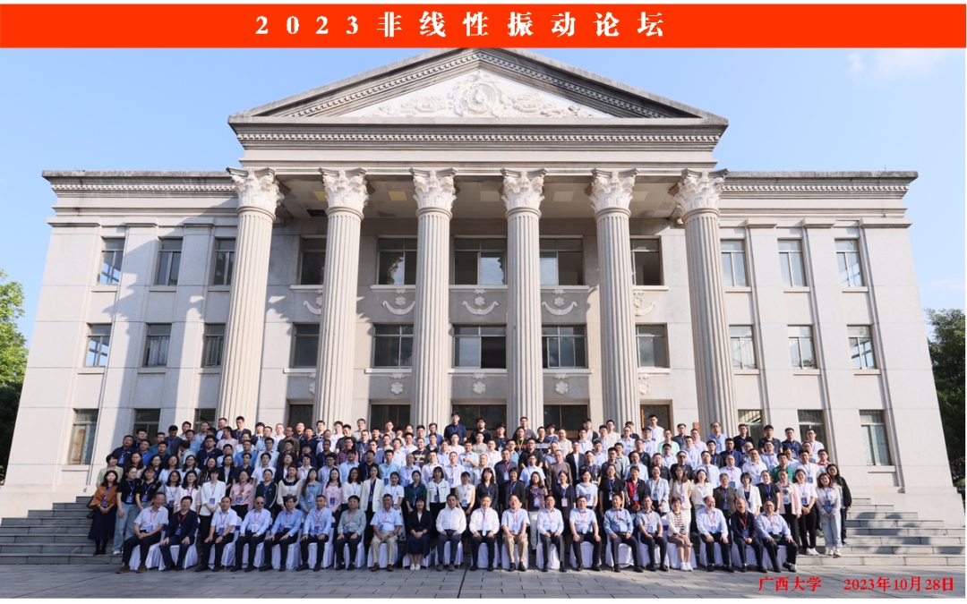“2023非线性振动论坛”于10月27日-29日在广西大学顺利举办。此次论坛由广西大学、中国振动工程学会非线性振动专业委员会联合主办,广西大学土木建筑工程学院、广西大学工程力学研究中心、省部共建特色金属材料与组合结构全寿命安全国家重点实验室联合承办,广西壮族自治区科学技术协会与广西力学学会指导。来自全国80多所高校、科研院所,包括中国科学院院士1名、国家级人才10名在内的200余名非线性振动领域专家学者参加了此次盛会。