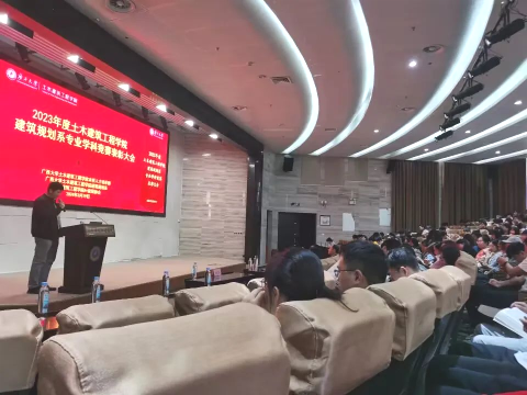 表彰大会伊始,吴杰老师给同学们送上新学期的祝福,并对过去一年建筑规划系在专业学科竞赛方面的工作做了总结。在2023年度,建筑规划系一共斩获48个奖项,比2022年(22个)新增26个奖项。在学科专业竞赛中实现了国家级A类竞赛一等奖的突破,并获得国家级二等及以上奖项24项、66人次,建筑规划系在2023年实现获奖质量与获奖数量上的双丰收!