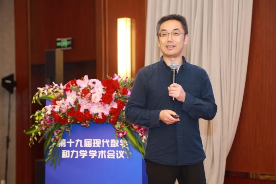 4月13日上午的主会场,王晋军教授以“柔性体受力的求解与分析”为题,首先阐释了柔性体受力的确定的非适定难题,然后介绍了基于频域核心项修正的经验正则化方法,实现对含噪数据高阶导数的近似求解,并成功应用于柔性板与圆柱尾迹相互作用的流固耦合实验,实现了对流动结构演化、柔性板变形及受力分布的协同分析。张田忠教授以“纳尺度多物理耦合力学的数学建模”为题,就范德华作用、热扰动等物理因素对纳尺度力学行为的重要影响,强调了这些影响的深刻认识和准确刻画是纳米力学的核心所在,并主要介绍了在纳米界面力热等耦合作用下力学领域的研究进展及相关数学建模。郭永新教授以“几何力学的对称性本源”为题,指出几何力学是分析力学现代发展的重要方向,其广泛采用了流形、纤维丛来表述动力学系统的空间结构,运用李群和李代数的对称性分析工具和外微分、李导数、几何积分等计算技术,几何力学使得力学系统的全局分析成为现实。张伟教授以“双稳态复合层合结构的高维非线性动力学及动态跳跃现象研究”为题,主要介绍了团队在双稳态复合材料层合结构的高维非线性动力学及动态跳跃现象的研究成果,包括动力学建模与动态跳跃研究、临界亚稳态非线性振动现象、双参数多脉冲混沌振动的全局摄动方法、非线性振动实验研究等工作。