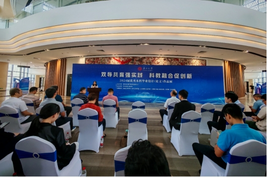 为进一步提高我校本科毕业论文(设计)质量,加强各学科间的交流,展示工作成效,2024年5月20日,我校在汇学堂举办了首届以“双导共育强实践,科教融合促创新”为主题的本科毕业论文(设计)作品展开幕式。广西大学副校长、教务长冯家勋,教务处处长耿葵花亲临现场指导并致辞。学生工作部(处)、教务处(教师教学发展中心)、教育教学质量监控与评价中心、校友办相关负责人、各学院分管领导、校外导师代表参加开幕式。