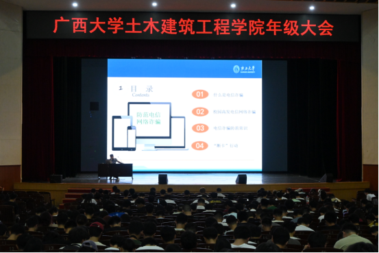 为增强我院全体学生预防、识别和应对电信网络诈骗的能力,营造“人人识诈、人人反诈”的良好氛围,筑牢校园反诈防火墙。2024年8月27日下午,土木建筑工程学院在学校大礼堂开展院开展2024年秋季学期防范电信网络诈骗宣传教育活动。活动由学院党委副书记银宁主持,学院团委书记潘桂祯、学工组谢雨真、陆源老师以及各年级学生到场参加。