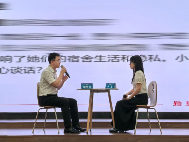 决赛现场设置谈心谈话环节,选手们面对不同类型的学生,运用专业的沟通技巧和心理学知识,耐心倾听、细致疏导,有效解决学生的思想困惑和实际问题,彰显了辅导员的关爱心、责任心和实干心。
