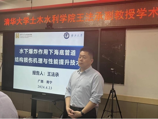 4月23日下午,清华大学土木水利学院王法承副教授在我院土木楼三楼会议室做了题为“水下爆炸作用下海底管道结构损伤机理与性能提升技术”的学术报告。