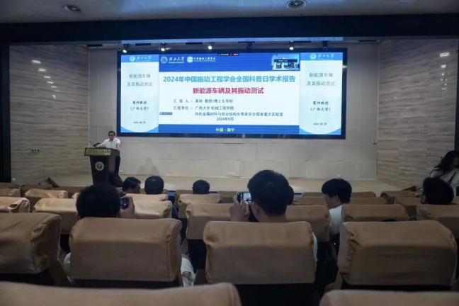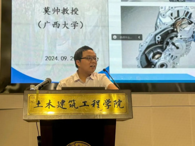 9月29日下午,广西大学莫帅教授在我院大型结构试验研究平台第六报告厅作了题为“新能源车辆及其振动测试”的学术报告。