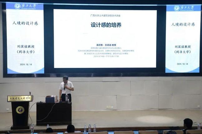 10月14日下午,同济大学刘滨谊教授在我院大型结构试验研究平台第六报告厅作了题为“人境的设计感”的学术讲座,讲座由我院李欣教授主持,广西大学土木建筑工程学院潘洌副教授、廖宇航副教授、浙江工业大学戴晓玲副教授以及我院和林学院的本科生、研究生参会。
