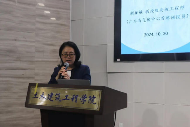 10月30日下午,广东省气候中心胡娅敏教授在我院大型结构试验研究平台第六报告厅作了题为“当前气候变化状态的挑战和机遇:以广东气象为例”的学术报告,报告会由我院罗丹旎副教授主持。