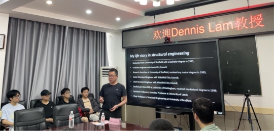 11月14日,首期“海外专家面对面”座谈会在我院三楼会议室成功举办。会议邀请英国布拉德福德大学(University of Bradford)Dennis Lam教授作为座谈嘉宾,座谈题目为“Structural Engineering: Research, Teaching and Practice”。本次座谈会由学院宣传与国际合作部副部长魏红主持;工程力学系副主任滕晓丹,建筑工程系副教授杨涛、陈博文,道路与桥梁工程系助理教授李威霖,宣传与国际合作部陈许珂老师等参与座谈交流;硕、博研究生及留学生近60人参会,现场气氛热烈。