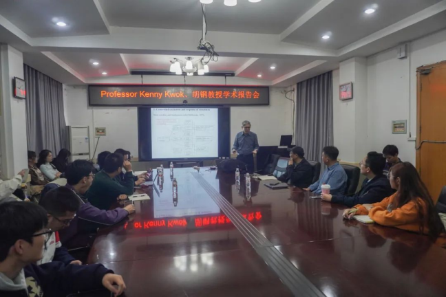 11月28日上午,悉尼大学/香港科技大学荣誉退休教师Kenny Kwok教授在土建学院三楼会议室作了题为“Wind-induced vibrations of structures with spacial reference to designing for occupant comfort for wind-excited tall buildings(高层建筑结构风致振动及人员舒适性设计)”的学术报告。报告会由我院黄铭枫教授主持。