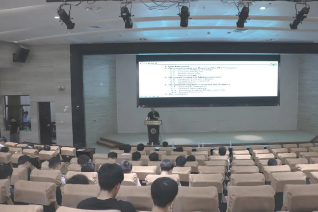 4月21日上午,东南大学蔡建国教授在我院大型结构试验研究平台第六报告厅作了题为“基于折纸元素的可展开结构与力学超材料研究”的学术报告,报告会由我院副院长杨海峰教授主持。