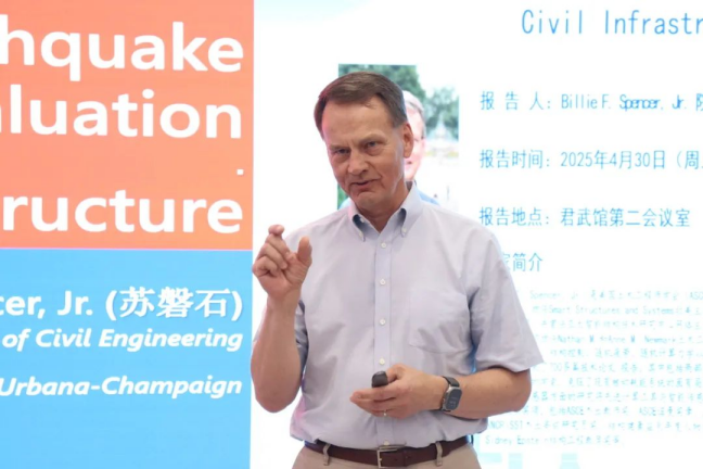 近日,伊利诺伊大学厄巴纳-香槟分校Billie F. Spencer, Jr.院士在君武馆第二会议室作了题为“Rapid Post-earthquake Inspection and Evaluation of CiviI Infrastructure”的学术报告,我院院长安永辉教授主持报告会。