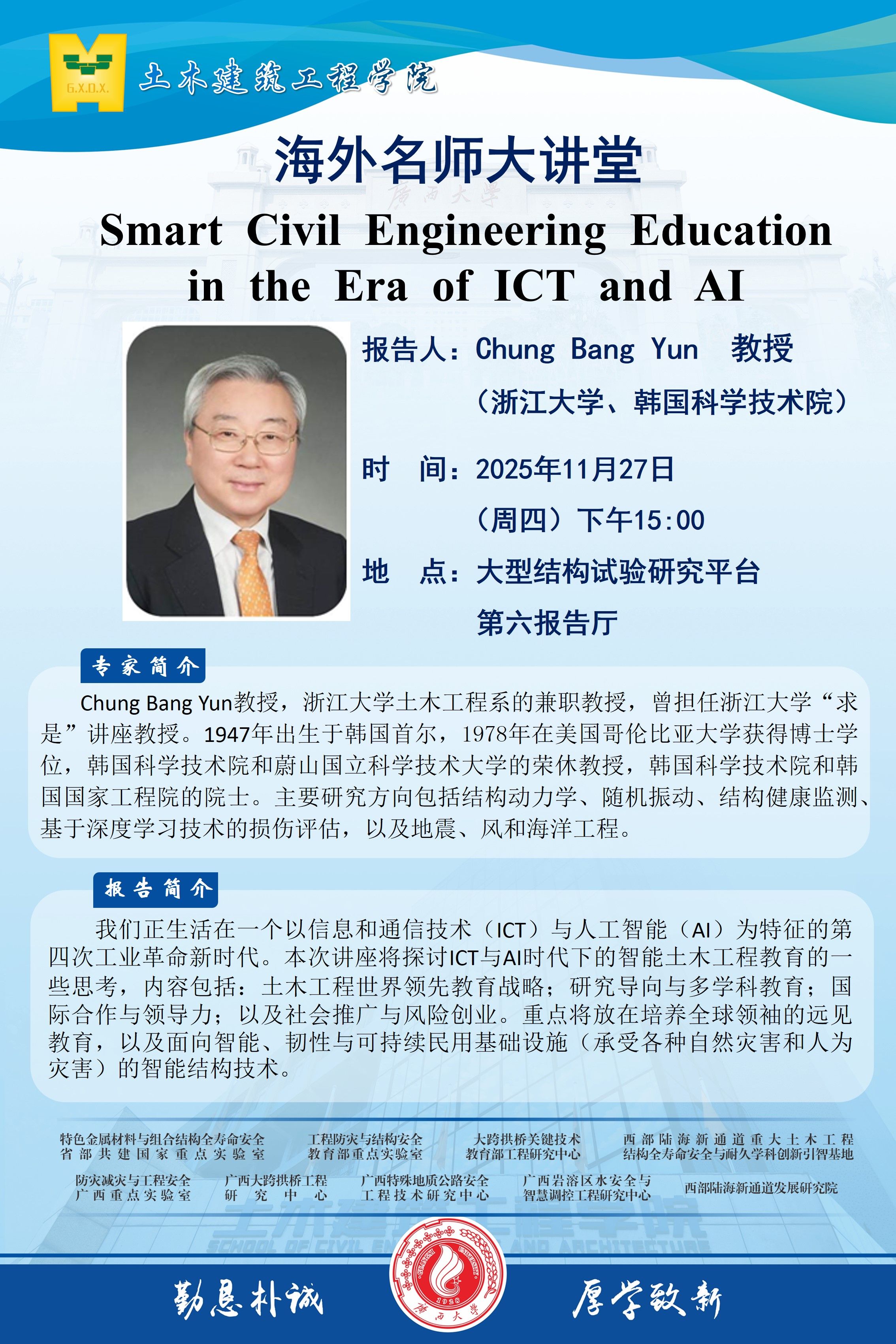 【上一条】Jung-June Roger Cheng教授学术报告:Structural Engineering Research Evolution:from design, serviceability and ultimate behaviors, operation, structural health monitoring to stress relief procedures of buried energy pipelines