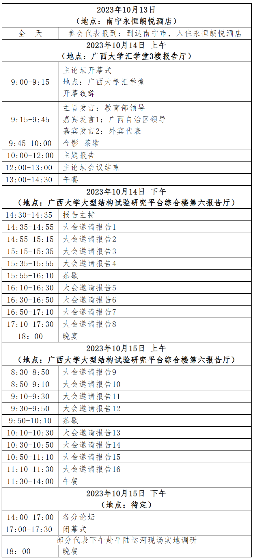 4.会议报到:2023年10月13日全天在南宁永恒朗悦酒店(广西南宁市西乡塘区大学东路118号)一楼大堂登记报到,领取餐券、会议资料等。