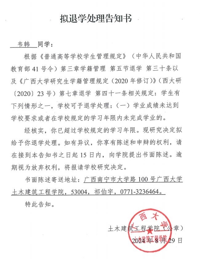 【上一条】关于对超规定学习年限研究生拟退学处理的公示